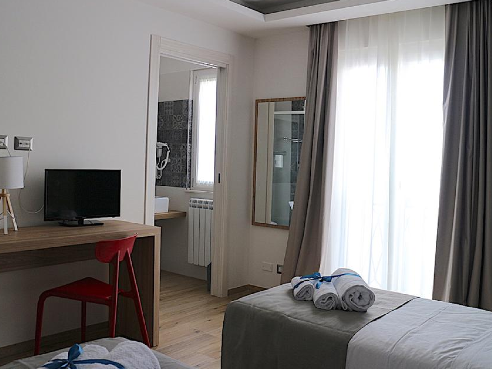 La stanza con vista giardino ha una dimensione di circa 25 metri quadrati ed oltre ad essere abbastanza ampia ed illuminata ha la caratteristica di affacciarsi in un meraviglioso giardino fiorito tutto l'anno . Ampia e confortevole la camera è dotata di tutti gli elementi necessari per un soggiorno indicato sia per svago che per impegni professionali .